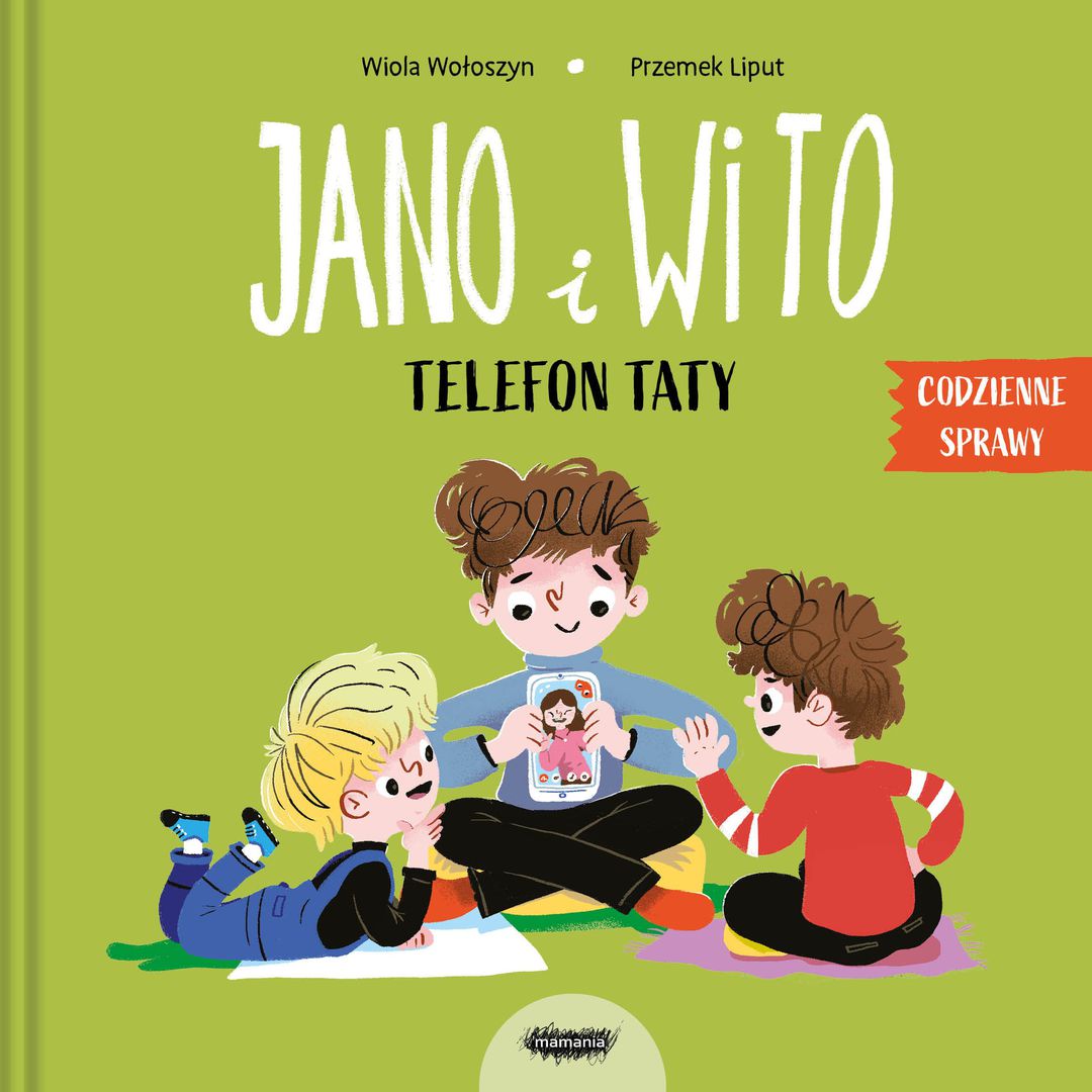 Jano i Wito : telefon taty / [tekst:] Wiola Wołoszyn ; [ilustracje:] Przemek Liput. - Warszawa : Mamania, copyright 2025. - [22] strony : ilustracje ; 20x20 cm.
